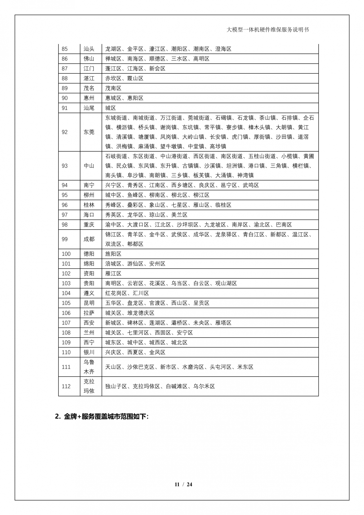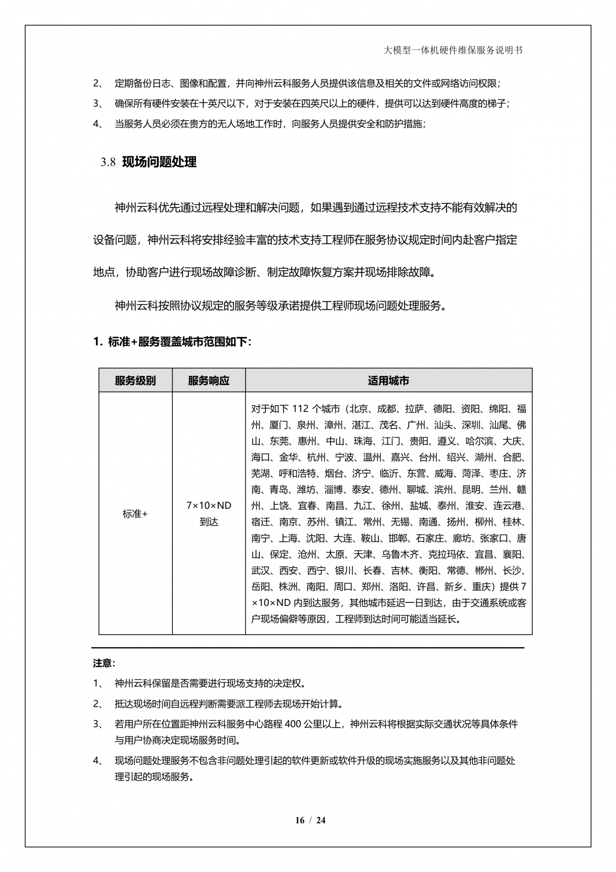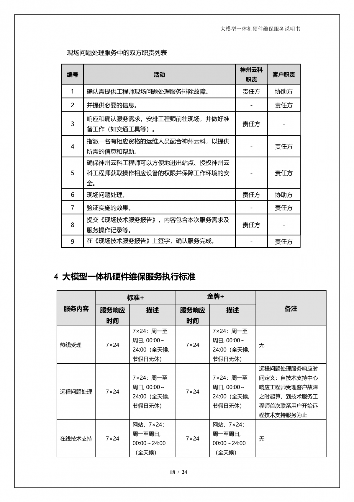 神州A924 DS大模型一体机硬件维保服务说明书_V1.1
